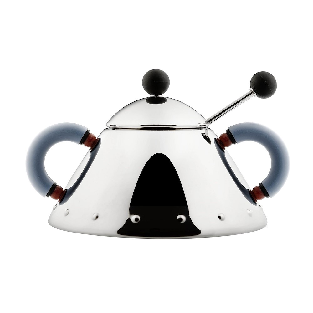 Zuccheriera con cucchiaino in acciaio inossidabile 18/10 lucido, manici in PA, azzurro e pomolo in PA, nero.