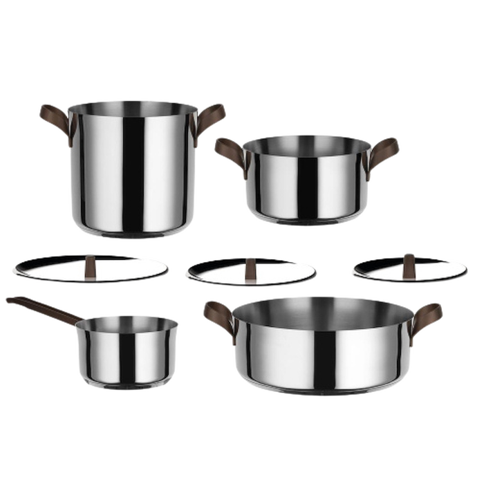 Disegnate da Patricia Urquiola, le pentole Edo nascono da un insieme di suggestioni formali e culturali. Una ricchezza di riferimenti che evoca l’essenza stessa del cucinare: ingredienti diversi creano pietanze prelibate. Edo rimanda al latino “edere” – ossia “mangiare” – ma è anche l’antico nome di Tokyo, da dove provengono delle pentole dalle linee semplici e aggraziate che hanno ispirato l’autrice. Il design della serie Edo è addolcito da alcuni elementi formali come la leggera svasatura dei contenitori o la linea dei manici che ricorda dei nastri appuntati a un vestito e diviene cifra distintiva dell’intera batteria di pentole.