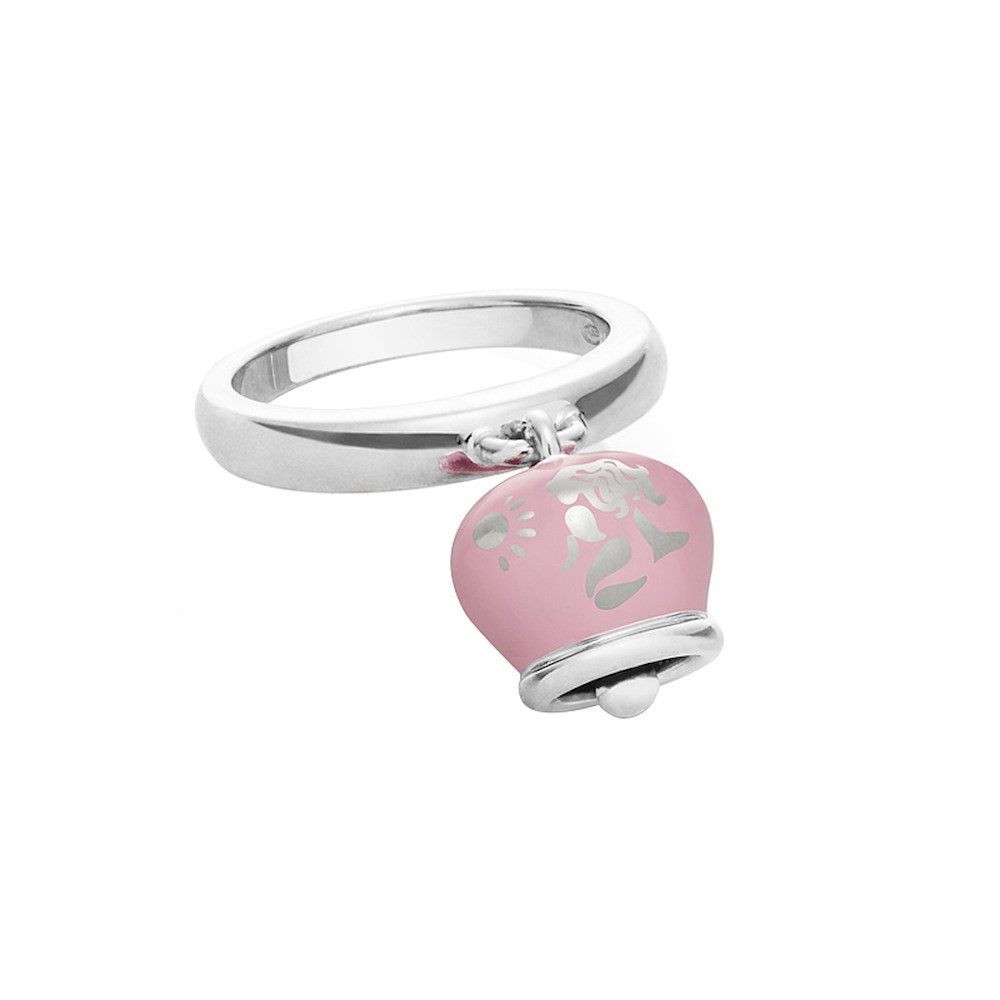 Chantecler anello con campanello pendente in argento con logo galletto e smalto rosa