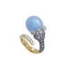 Anello Joyful in oro giallo 18Kt, diamanti, zaffiri azzurri e poire in cristallo color glicine.