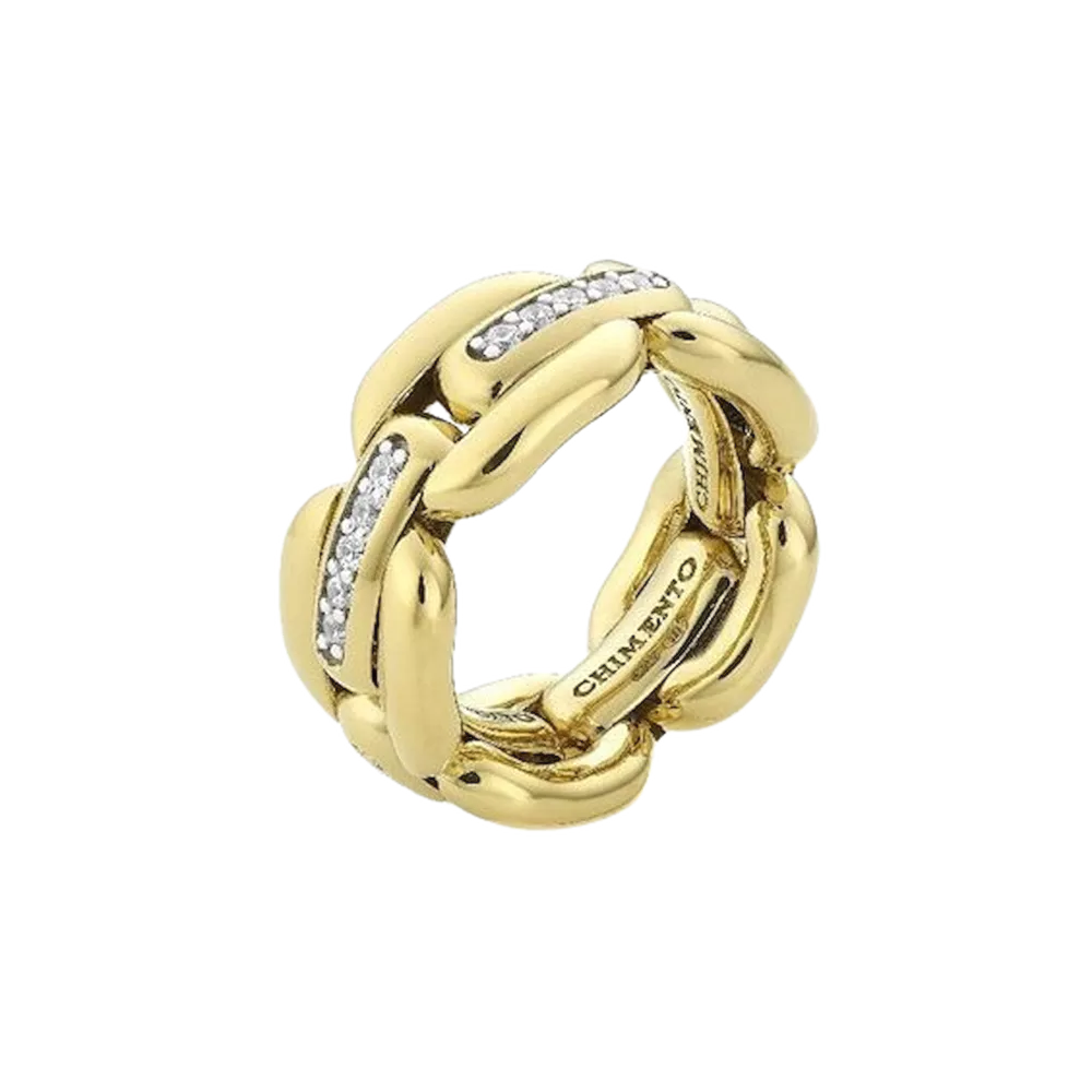 Anello Chimento X-Tend Ref. 1A09481BB1140 realizzato in oro giallo 18 kt con maglie estensibili e impreziosito da diamanti bianchi naturali per un totale di 0,45 ct, un gioiello dal design moderno che unisce comfort, luminosità e qualità artigianale italiana.