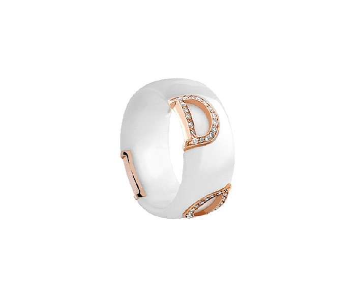 Anello Damiani collezione D-icon in ceramica bianca e oro rosa con diamanti incastonati