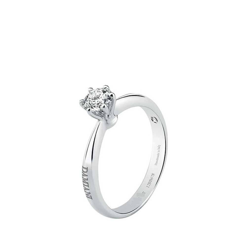 Damiani Anello modello solitario collezione Elettra a sei griffe con diamante taglio brillante caratura 0.72 Kt colore G purezza VVS