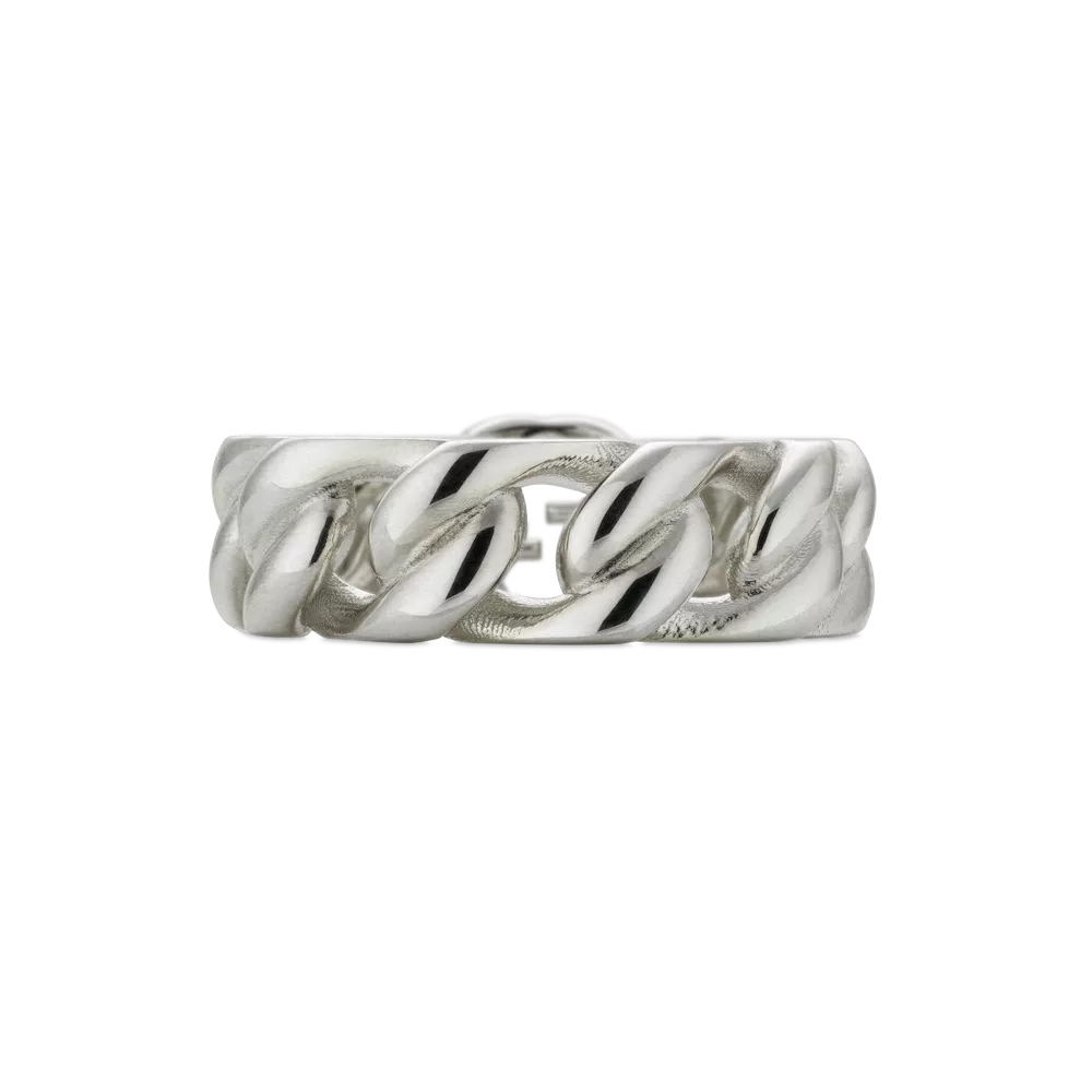 Anello Gucci Interlocking realizzato in argento passivato 925, dal design audace e riconoscibile. Con un’altezza fascia di 7 mm e un peso totale di 8,1 grammi, questo anello combina la robustezza dell’argento sterling con la finitura passivata che ne preserva la brillantezza nel tempo. Disponibile nelle misure dalla 10 alla 26, l’anello Gucci Interlocking in argento passivato è un simbolo di stile contemporaneo e raffinatezza, perfetto per chi desidera un accessorio elegante e dal carattere deciso.