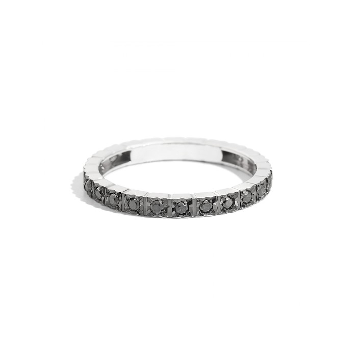 Anello veretta, in oro bianco 18 kt e diamanti black taglio brillante 0.38 Kt.