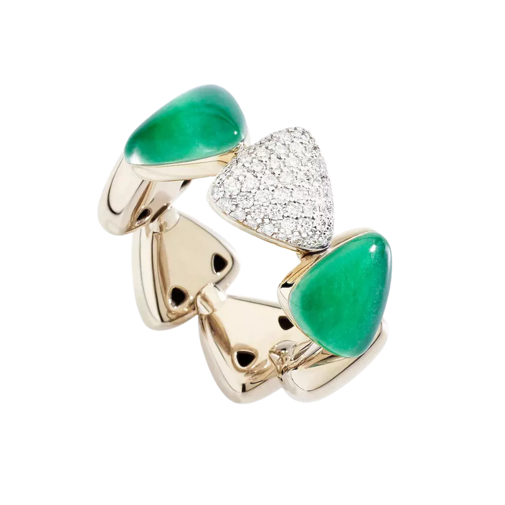 L’anello Freccia Midi in oro bianco 18k non rodiato unisce eleganza e design raffinato, combinando la brillantezza dei diamanti con la lucentezza della giada e la trasparenza del cristallo di rocca. Impreziosito da 58 diamanti per un totale di 0,48 carati, di qualità DEF e purezza da SE a VVS, l’anello Freccia Midi è un gioiello sofisticato che valorizza con stile ogni look, fondendo materiali pregiati e maestria artigianale.