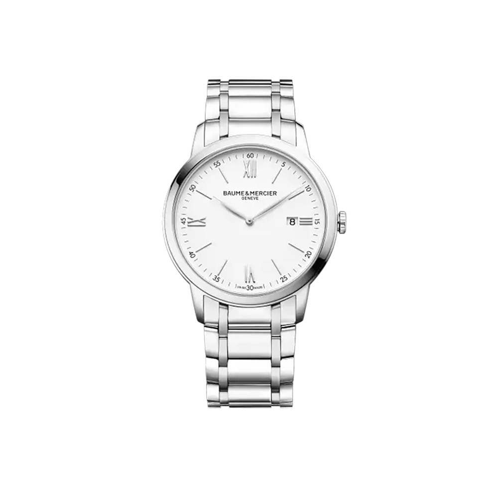 L’orologio Classima M0A10526 da 42 mm in acciaio inossidabile vanta un’estetica elegante e minimalista. Il segnatempo presenta un raffinato quadrante bianco con cifre romane e indici rodiati, nonché una finestrella della data a ore 3.
