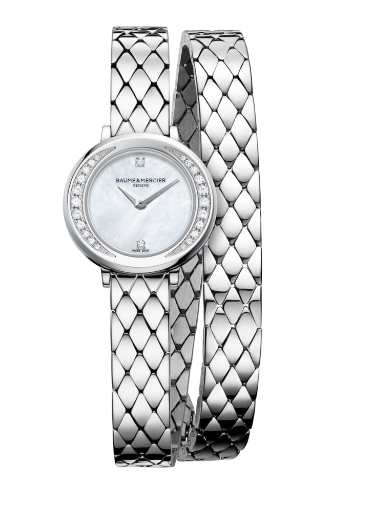Orologio da polso elegante Baume & Mercier Petite Promesse 10289 analogico donna con movimento al quarzo, cassa in acciaio inossidabile di diametro 22 mm, quadrante bianco, vetro zaffiro e cinturino in acciaio inossidabile