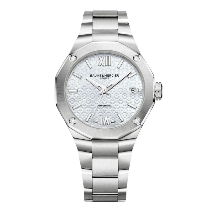 Animato da un movimento automatico “Swiss made”, questo Riviera è ornato da un quadrante in madreperla e accompagnato da un bracciale in metallo. Fedele al design originale, mantiene la lunetta dodecagonale, una decorazione esclusiva e il sistema di intercambiabilità del cinturino. Un segnatempo di carattere per una personalità decisa.