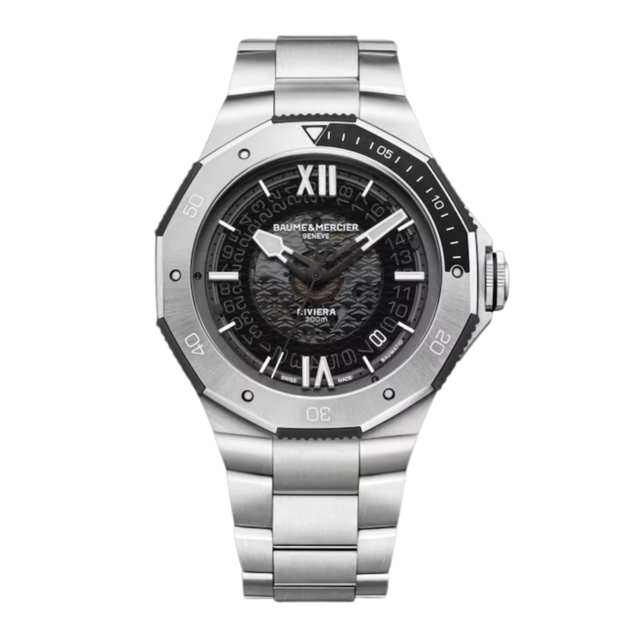 Animato dal prestigioso calibro di Manifattura Baumatic, il Riviera 10717 è l’orologio svizzero “all road” per eccellenza. Il quadrante in vetro zaffiro grigio fumé trasparente, la lunetta girevole unidirezionale e l’anello in alluminio anodizzato nero completano il look sportivo di questo segnatempo “Swiss Made”. L’orologio ideale per gli sport acquatici.