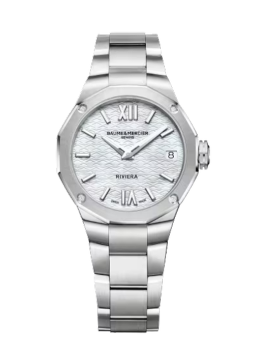 Animato da un movimento al quarzo “Swiss Made”, questo Riviera è ornato da un quadrante in madreperla, 4 diamanti sulla lunetta e accompagnato da un bracciale in metallo che gli conferisce un look luminoso. Un segnatempo di carattere per una personalità decisa.