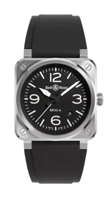 La collezione BR 03 riassume l'identità della Maison e ne simboleggia lo stile con il suo emblematico motivo del "tondo nel quadrato con quattro viti". Fedele ai suoi codici identitari, il nuovo BR 03 si evolve presentando un formato leggermente ridotto e una riserva di carica di 54 ore, grazie al calibro di ultima generazione, il BR CAL.302.