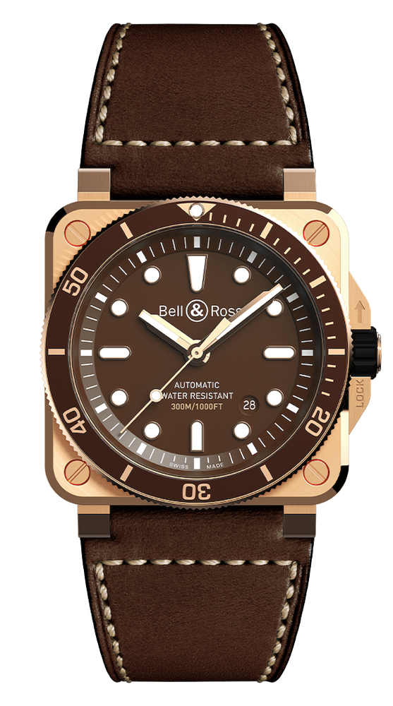 Il nuovo BR 03-92 DIVER BROWN BRONZE è un vero strumento subacqueo. Risponde esattamente al disciplinare svizzero, è resistente agli urti, agli shock termici o ancora all’acqua salata, … ed è conforme alla norma internazionale ISO 6425. Questo modello subacqueo riprende il design che identifica la Maison; prende infatti in prestito la cassa “tonda nel quadrato” dell’iconico BR 01 ma in versione sottomarina impermeabile. Ha un quadrante marrone e una cassa in bronzo, il materiale associato al mare per eccellenza. La tonalità rame della sua cassa si sposa perfettamente con il colore caldo del quadrante e della lunetta. L’evoluzione nel tempo della sua cassa donerà un aspetto unico a ciascuno dei 999 esemplari realizzati. Il BR 03-92 DIVER BROWN BRONZE è allo stesso tempo velatamente rétro e decisamente all’avanguardia. Questa silhouette insolita gli conferisce una forte personalità che sedurrà sia l’appassionato di design che il subacqueo esperto.