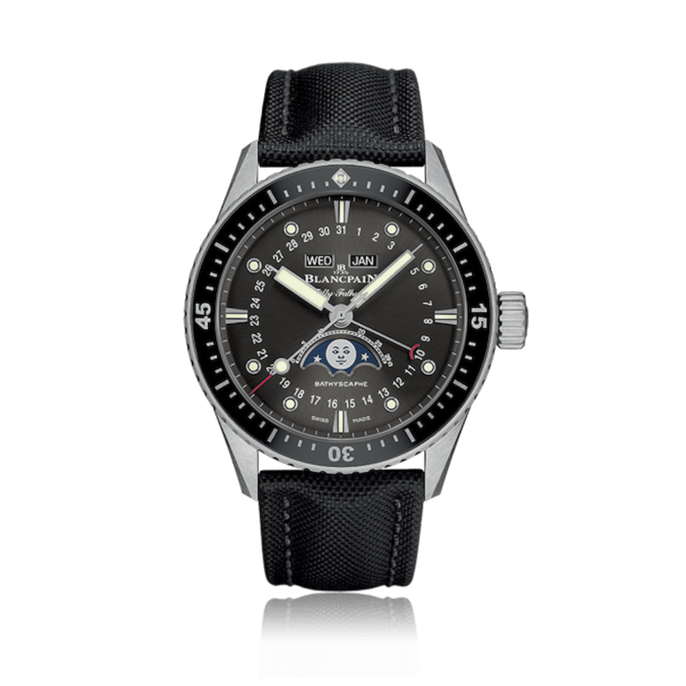 Dotato di calendario completo, questa complicazione indica data, giorno della settimana e mese. Il volto mutevole della Luna, riprodotto sul quadrante, aggiunge una nota poetica all’insieme. La riproduzione dei cicli lunari sul quadrante delle creazioni Blancpain richiama legami ancestrali tra l’orologeria e l’astronomia. Questi orologi indicano se la Luna è nuova, crescente, piena o calante.
