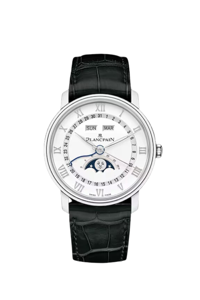 Questa complicazione indica data, giorno della settimana e mese. Il volto mutevole della Luna, riprodotto sul quadrante, aggiunge una nota poetica all’insieme. La riproduzione dei cicli lunari sul quadrante delle creazioni Blancpain richiama legami ancestrali tra l’orologeria e l’astronomia. Questi orologi indicano se la Luna è nuova, crescente, piena o calante.