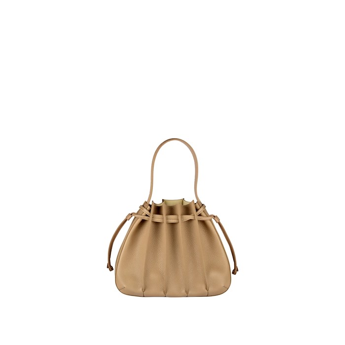 La borsa a secchiello di lusso Gem in pelle di vitello martellata cammello è il simbolo di un’eleganza libera e disinvolta. Il formato a sacchetto di questa borsa iconica e pratica prevede una chiusura a coulisse che permette di far scivolare facilmente gli accessori all’interno senza preoccuparsi di dimenticare l’essenziale. Questa borsa in pelle da donna è un must have del guardaroba femminile. Può essere portata a mano o a spalla grazie all’ampio manico in pelle con il logo Chopard goffrato.