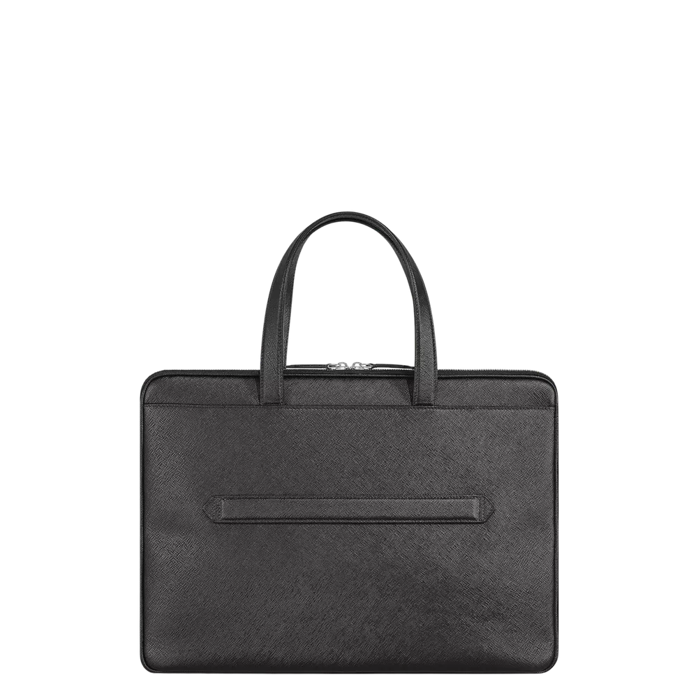 Pensata per accompagnare i professionisti contemporanei in ogni giornata di lavoro, la cartella sottile in pelle Sartorial goffrata nera unisce funzionalità ed eleganza in un design compatto e raffinato. Realizzata in pelle bovina pieno fiore con stampa Saffiano, presenta iconiche tracolle decorative sul davanti che aggiungono un tocco distintivo e aumentano la sicurezza. L’apertura a 360° garantisce un accesso pratico e immediato all’interno, dove si trovano due scomparti principali, una fascia per computer portatile, due tasche piatte e due passanti per strumenti da scrittura. La cartella sottile in pelle Sartorial goffrata nera è dotata anche di un sistema satellite per il fissaggio al trolley, perfetta per chi si muove con stile tra impegni di lavoro e viaggi. Rifinita con fodera interna in poliammide e cotone, chiusura con cerniera in metallo e patta magnetica nascosta, pesa 1148 g e misura 380 mm x 50 mm x 270 mm.