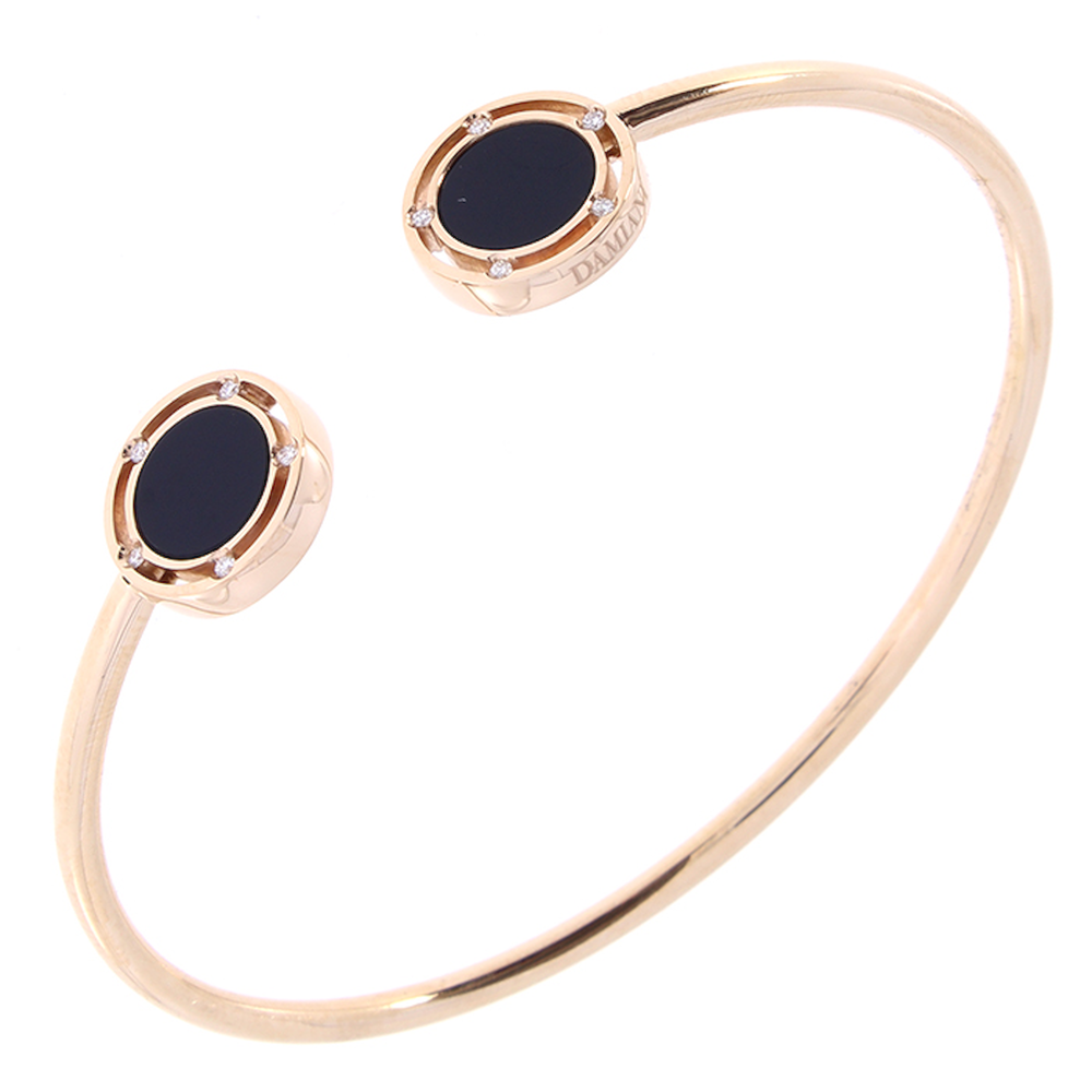 Damiani bracciale rigido in oro rosa ed Onice con diamanti incastonati nel tipico design Damiani della collezione D-Side