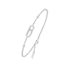 Questo bracciale con pavé di diamanti in oro bianco 18 carati, interamente realizzato a mano e con un diamante in movimento taglio brillante incastonato, fa parte della collezione Move, un design iconico della Maison Messika. La raffinata catena in oro bianco è adornata dalla preziosa gabbia Move, in cui un diamante incastonato scorre e brilla in base ai movimenti. La brillantezza dell’oro bianco esalta la purezza dei diamanti, accentuando così la magnifica brillantezza di questo bracciale in oro bianco e diamanti. Può essere indossato da solo o abbinato ad altri bracciali al polso. Dettaglio chic: i diamanti che impreziosiscono la catena donano un tocco di luce in più a questo gioiello.
