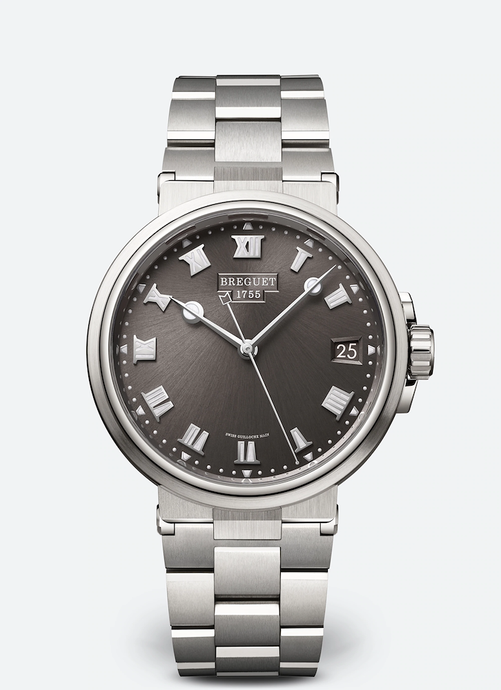 Disponibile in titanio con quadrante "soleillé" color ardesia in oro, in oro rosa 18 carati con quadrante in oro argentato, oppure in oro bianco 18 carati con quadrante blu in oro.