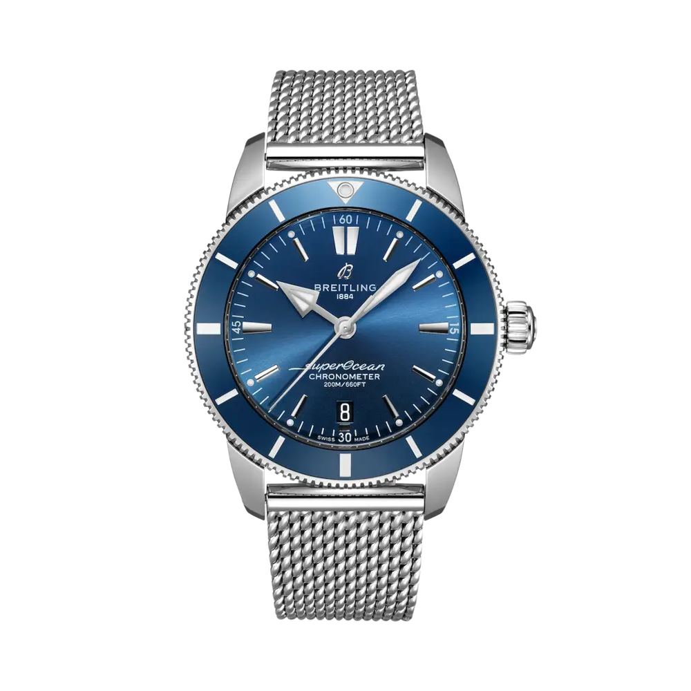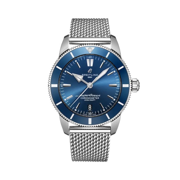 Ispirato al Superocean originale degli anni ’50, il Superocean Heritage combina un design dalle caratteristiche iconiche con un tocco di modernità. Sportivo ed elegante, il Superocean Heritage è la vera incarnazione dello stile acquatico. Caratterizzato dalle iconiche lancette di forma triangolare e da una lunetta unidirezionale con anello in ceramica lucida, il Superocean Heritage è un orologio subacqueo dall’aspetto elegante. Disponibile in diverse misure e materiali tra cui l’acciaio inossidabile e l’oro rosso 18 carati, il Superocean Heritage B20 Automatic presenta una gamma di quadranti in nero o blu. Proposto con un bracciale a maglie abbinato o con cinturino in caucciù «lavorato a maglie» adattabile a una fibbia deployante, questo Superocean Heritage è azionato dal Calibro di manifattura Breitling B20, un cronometro certificato COSC ispirato al Calibro Tudor MT 5612.
