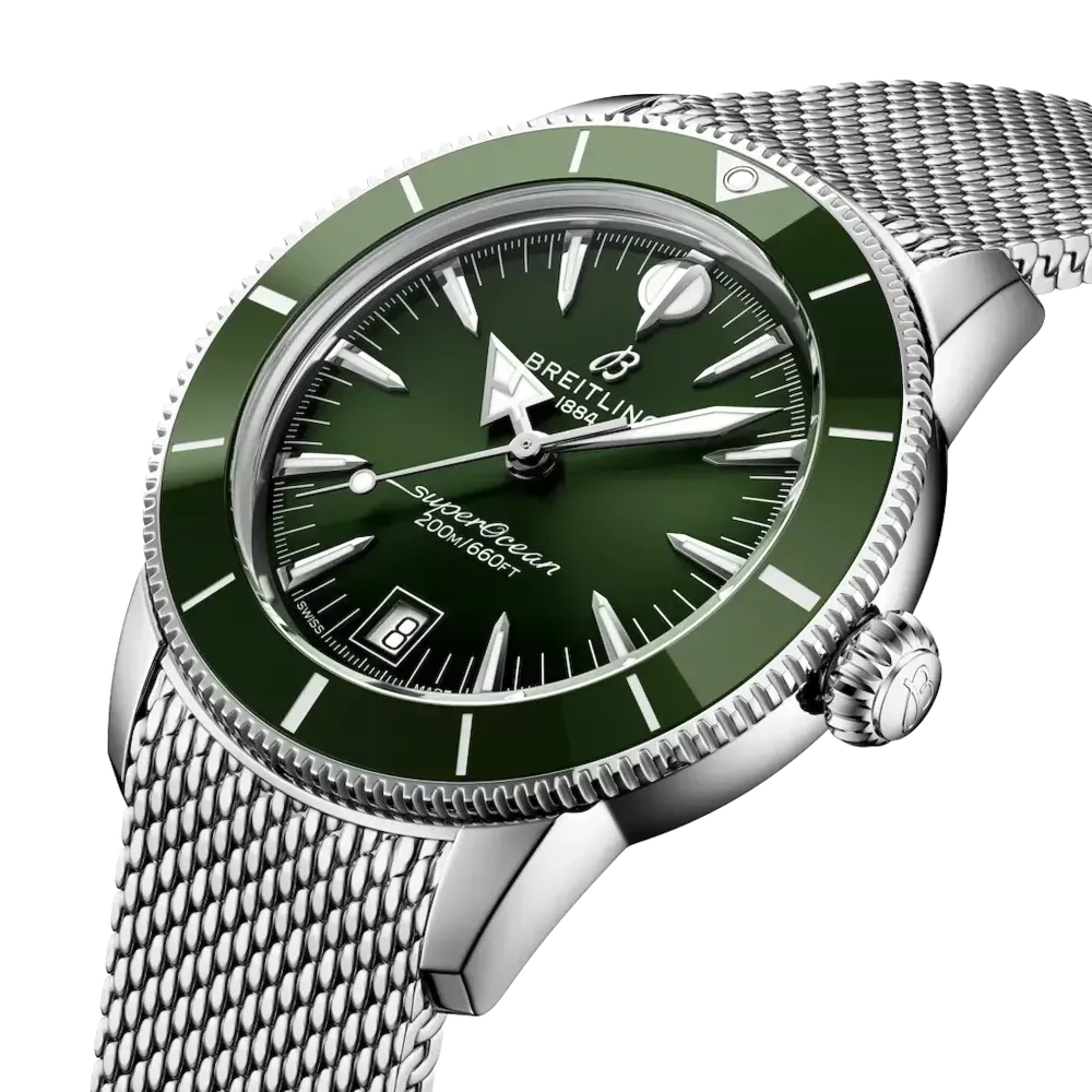 Progettato per accompagnarti con stile dalle onde dell’oceano al lungomare. Il Superocean Heritage non è un orologio subacqueo qualsiasi, non lo è mai stato. Quando Breitling lo presentò per la prima volta nel 1957, si distinse radicalmente dagli altri orologi subacquei dell’epoca. Il Ref. 1004 (un raffinato modello solo tempo) e il Ref. 807 (il primo cronografo al mondo dedicato alle immersioni) non si limitavano a esplorare il mondo sottomarino, ma si preoccupavano anche dell’estetica. Con le sue lancette che ricordavano le forme di una lancia e una freccia, la lunetta girevole anodizzata e le proporzioni naturalmente eleganti, l’orologio diventò presto uno dei preferiti dagli avventurieri più raffinati, che amavano il mare ma anche la mondanità. Oggi, questa filosofia è ancora al centro dell’identità del Superocean Heritage. Mantiene l’anima autentica degli anni ’50 pur essendo progettato per il presente. L’ultimo Superocean Heritage riprende il modello originale in tutto ciò che lo ha reso distintivo – e lo rinnova. La collezione presenta il movimento automatico B31, il primo calibro di manifattura esclusivo a tre lancette di Breitling. La lunetta con intarsio in ceramica offre un’eccezionale resistenza ai graffi, mentre i cinturini a maglie in metallo o in caucciù si adattano perfettamente alla cassa, con una fibbia deployante per garantire estetica pulita e impermeabilità. Un raffinato calendario a finestrella a ore 6 e le caratteristiche lancette originali (freccia per le ore, lancia per i minuti) garantiscono leggibilità ed equilibrio, sia sopra che sotto la superficie dell’acqua.