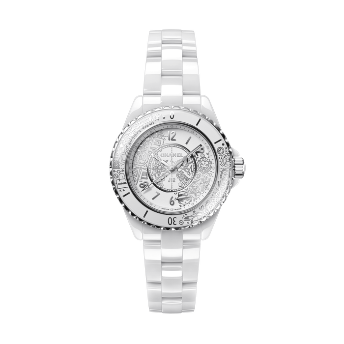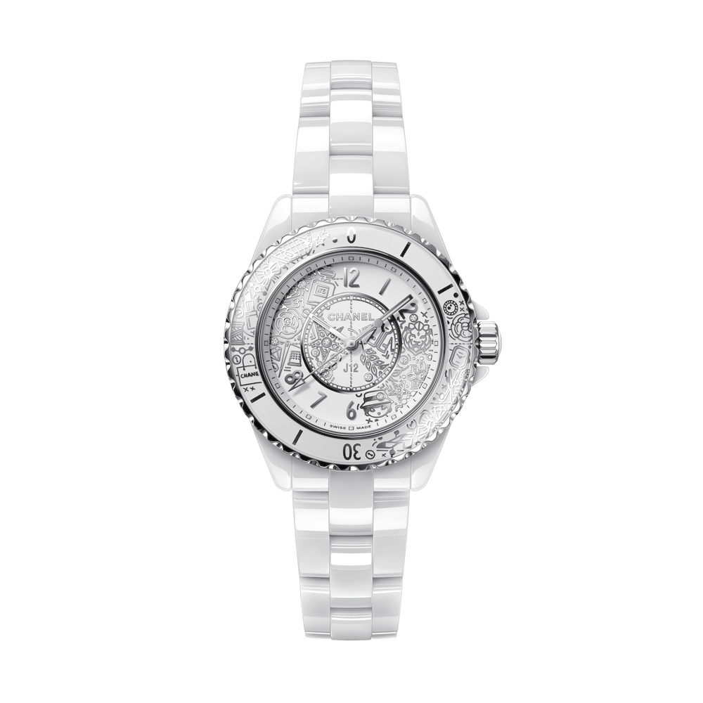 Il J12 compie 20 anni con una creazione esclusiva contraddistinta dai simboli CHANEL. Un modello inedito in ceramica bianca che riunisce tutte le icone e gli emblemi della Maison. Un’edizione limitata di 2020 esemplari.