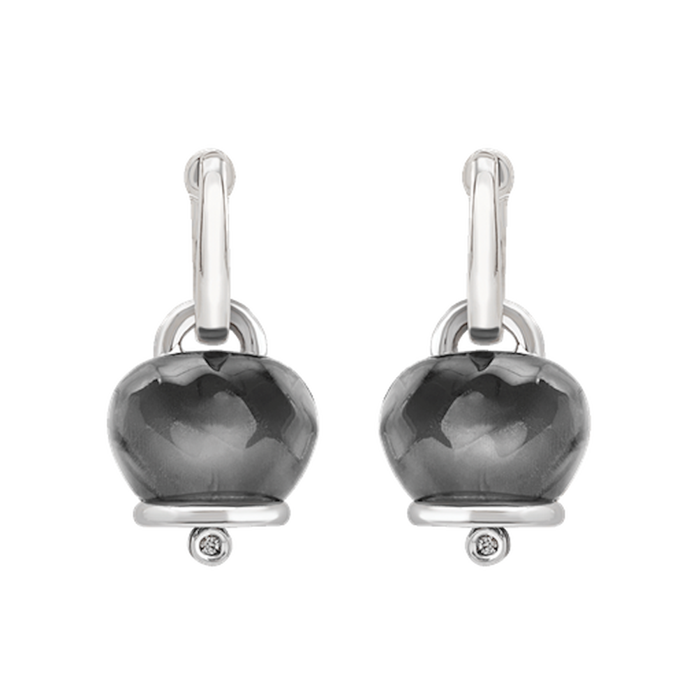 Orecchini Et Voilà Campanella medi in argento, resina sfaccettata a mano color nero e due diamanti