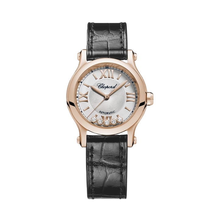 La collezione Happy Sport è l'emblema della creatività e dell'audacia di Chopard. Le sua giocose pietre preziose, che danzano liberamente tra due vetri zaffiro, fanno sognare sin dal 1993, quando Chopard è diventata la prima Maison a coniugare acciaio e diamanti. La grande competenza orologiera ha consentito a Chopard di dotare il modello Happy Sport da 30 mm di un movimento meccanico a carica automatica appositamente sviluppato per le casse dei modelli femminili.