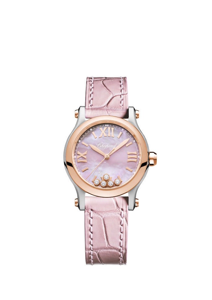 Chopard Happy Sport acciaio ed oro rosa con cinturino pelle e quadrante madreperla rosa cassa 30 mm