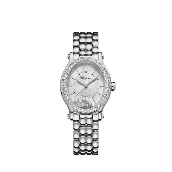 La collezione Happy Sport è l'emblema della creatività e dell'audacia di Chopard. Le sue giocose pietre preziose, che danzano liberamente tra due vetri zaffiro, fanno sognare sin dal 1993, quando Chopard è diventata la prima Maison a coniugare acciaio e diamanti. La grande competenza orologiera ha consentito a Chopard di dotare il modello Happy Sport Oval di un movimento meccanico a carica automatica appositamente sviluppato per le casse dei modelli femminili. Little Diamonds Do Great Things.