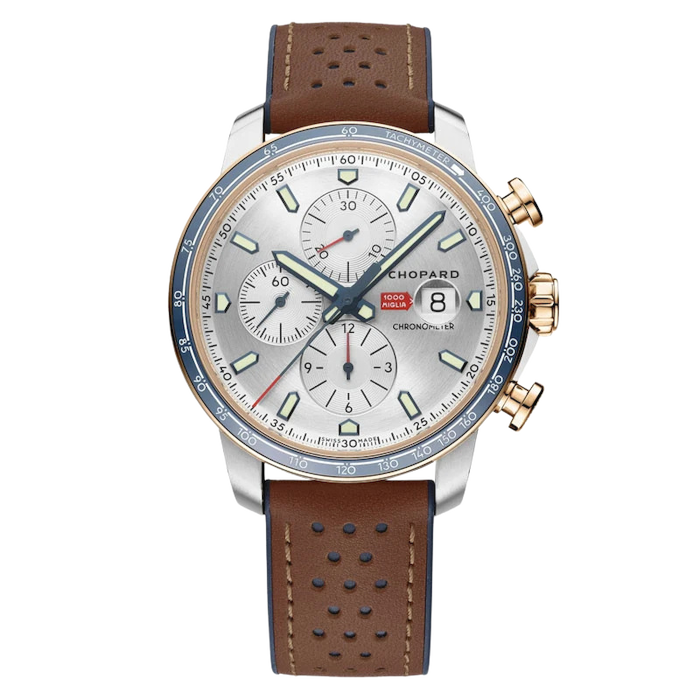 Dalla sua rinascita nel 1977, la gara della 1000 Miglia continua ogni anno a far fremere i motori delle auto leggendarie e i cuori dei concorrenti lungo il percorso ad anello di 1.600 km che attraversa San Marino, Roma, Siena e Firenze. Chopard, Partner Principale e Orologio Ufficiale dell’evento dal 1988, rinnova anche quest’anno il suo impegno e presenta per l’occasione i cronografi Mille Miglia 2022 Race Edition. L’elegante segnatempo con movimento di precisione certificato “Cronometro”, disponibile in un’edizione limitata di 1.000 esemplari in acciaio inossidabile o in versione bicolore di 250 esemplari in acciaio inossidabile e oro etico rosa 18 carati, riflette la passione inalterabile di Chopard per gli sport motoristici.