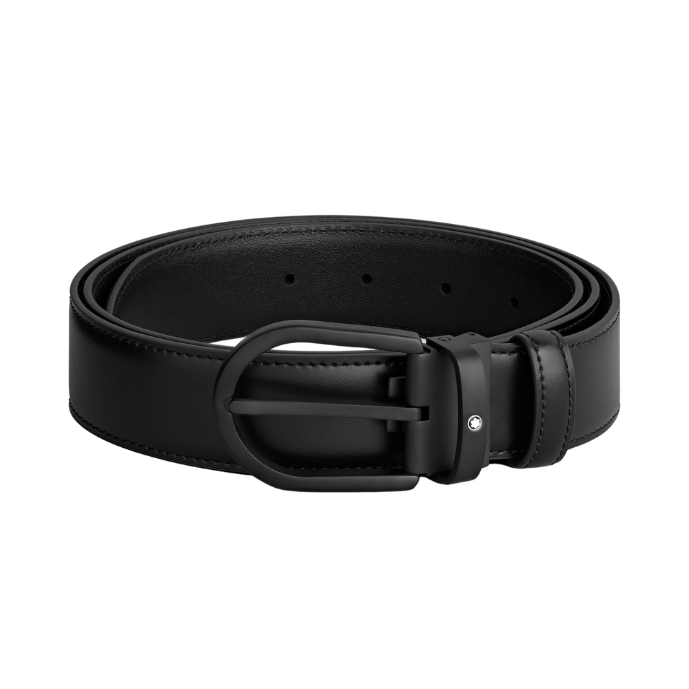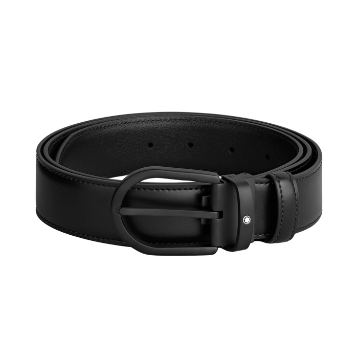 Questa elegante cintura tubolare da 35 mm è realizzata in lussuosa pelle nera e presenta una fibbia ad ardiglione a ferro di cavallo unica finitura PVD nera danno una nota sofisticata a ogni outfit.