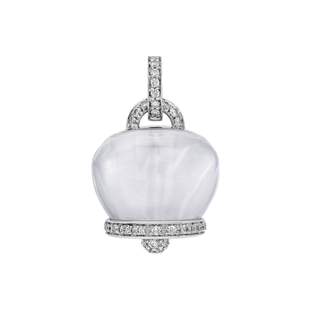 Ciondolo Campanella grande Rock Crystal in oro bianco 18Kt, diamanti e cristallo di rocca sfaccettato a mano