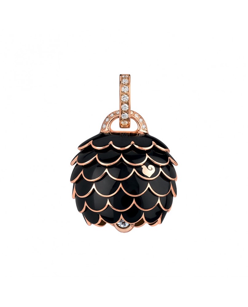 Ciondolo Campanella Chantecler Paillettes in oro rosa diamanti bianchi e smalto nero