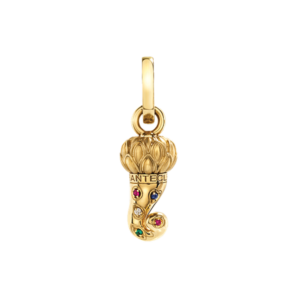Ciondolo Corno piccolo in oro giallo 9kt, diamanti, zaffiri, smeraldi e rubini