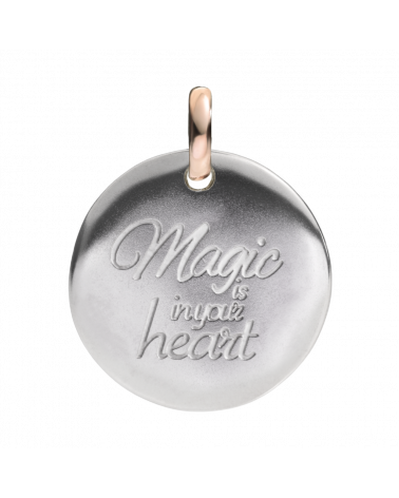 Moneta Queriot "Magis is in your Heart” in Argento 925, asola in oro rosa 9k e scritta incisa con smalto a freddo