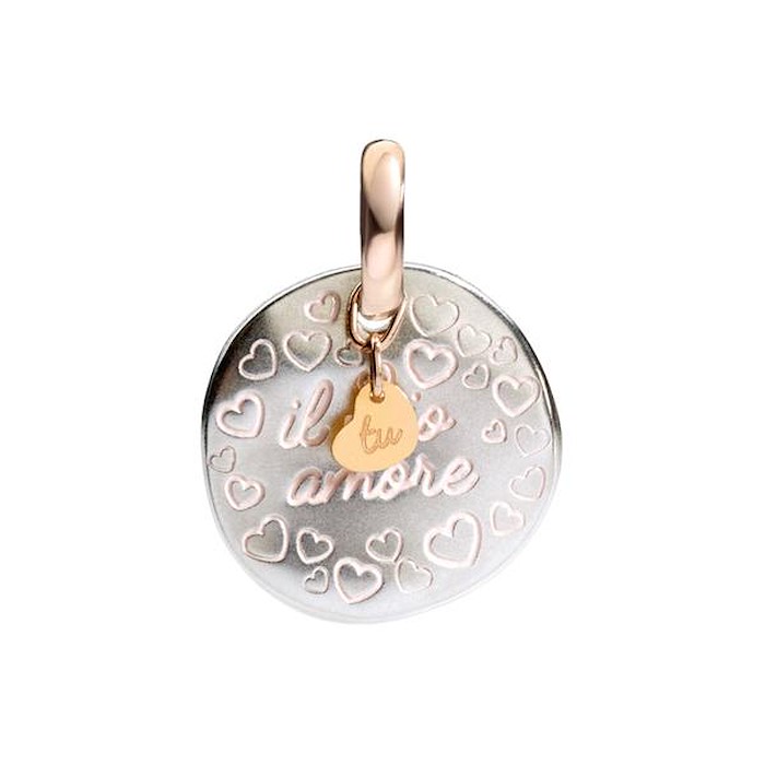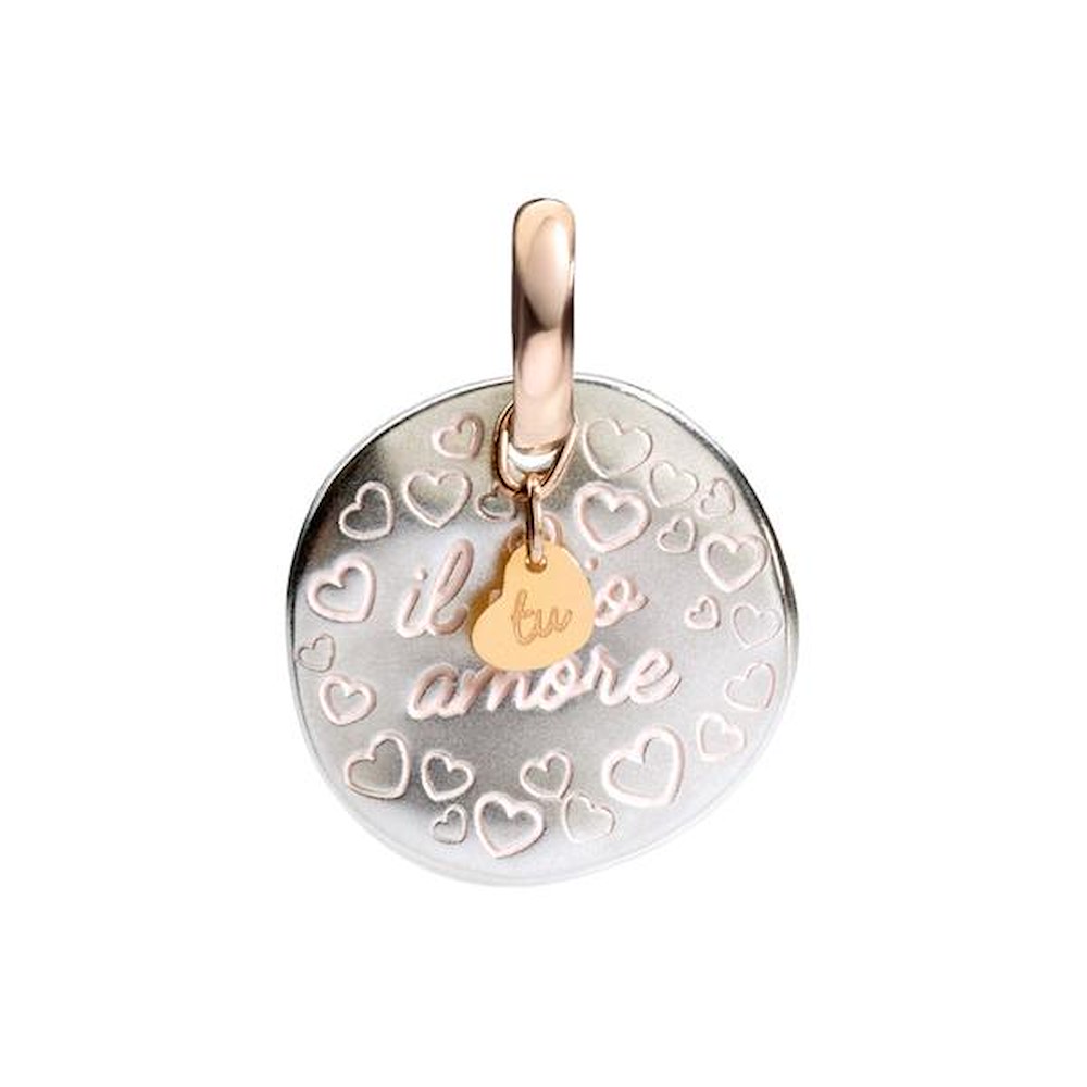 Moneta Queriot Argento 925, oro rosa 9k e smalto a freddo color rosa- Diametro 2 cm