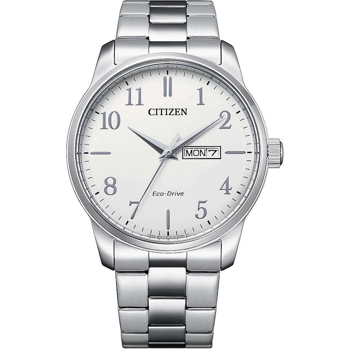 Orologio Solo Tempo Da Uomo Di Citizen Della Collezione Classic. Orologio Con Cassa E Bracciale In Acciao Con Fondo Serrato A Vitee Cassa Con Diametro Di 41 Mm. Bracciale In Acciaio. Orologio Con Quadrante Bianco Con Dettagli Color Acciaio. La Resistenza All'Acqua È Di 10 Atm. Il Movimento È Eco Drive Con Riserva Di Carica Di 6 Mesi E Con Funzione Solo Tempo E Day Date Con Datario. Orologio Con Vetro Minerale