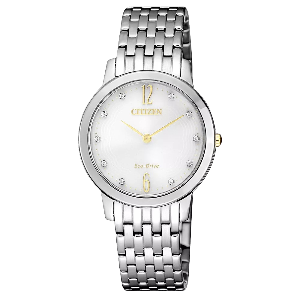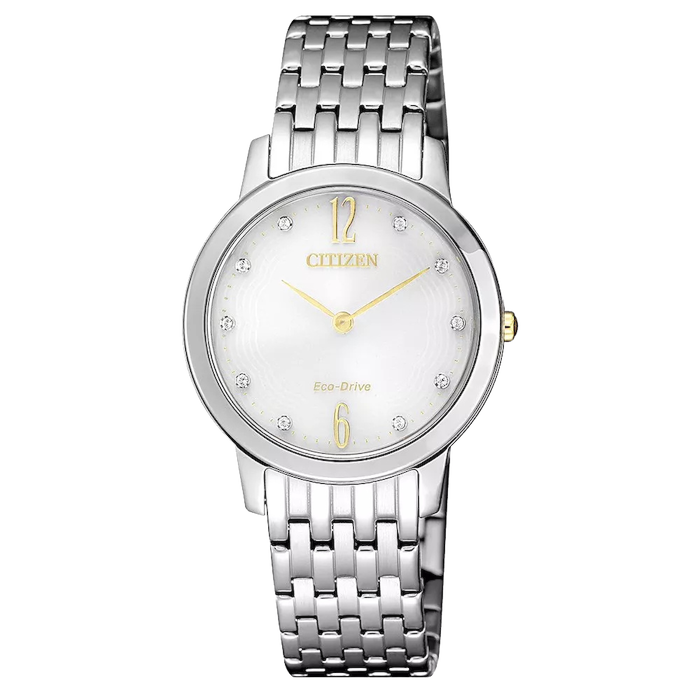 Gli orologi da donna Citizen della Collezione Lady presentano forme eleganti e ogni Modello ha delle particolarità che lo rendono originale, come i diamanti incastonati nella cassa, il quadrante in madreperla, la forma del bracciale o del quadrante. Gli orologi femminili Citizen sono impermeabili fino 5 bar e sono tutti a carica Eco Drive, cioè sfruttano la luce (sia naturale che artificiale) per caricare l’orologio senza il bisogno di sostituire la batteria per anni, salvaguardando così l’ambiente.