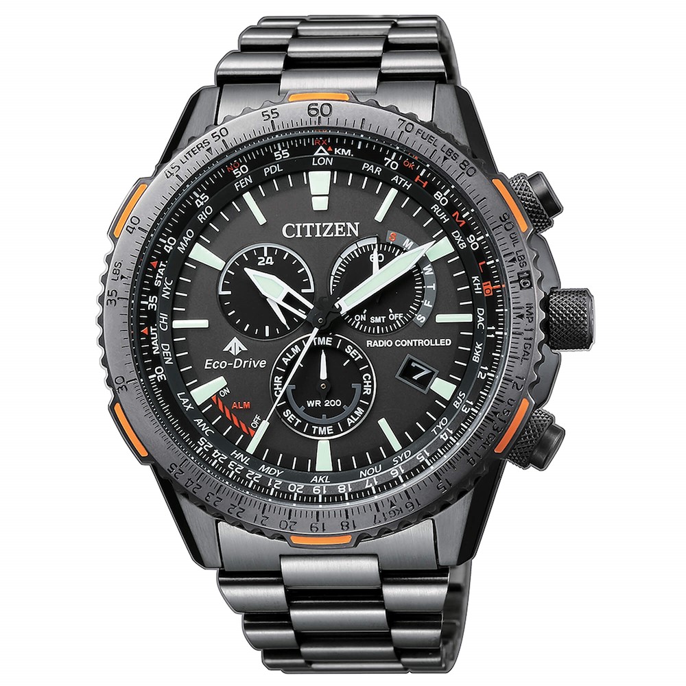 Radiocontrollato a 5 canali: ricezione del segnale orario USA, Europa, Cina, Giappone. World timer con orario di 24 città del mondo e ora UTC. Allarme. Cronografo.