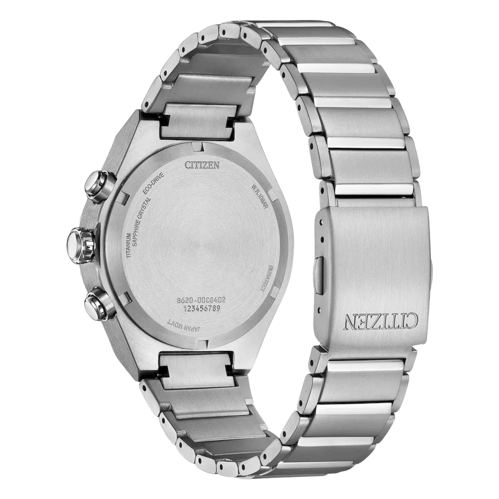Cronografo a 1/5 di sec. Cassa e bracciale in Super Titanio (Titanio grado 2 con lavorazione Duratect). Vetro zaffiro con trattamento anti-riflesso. WR 10 bar.