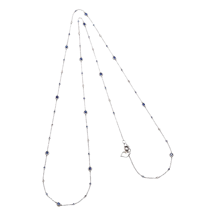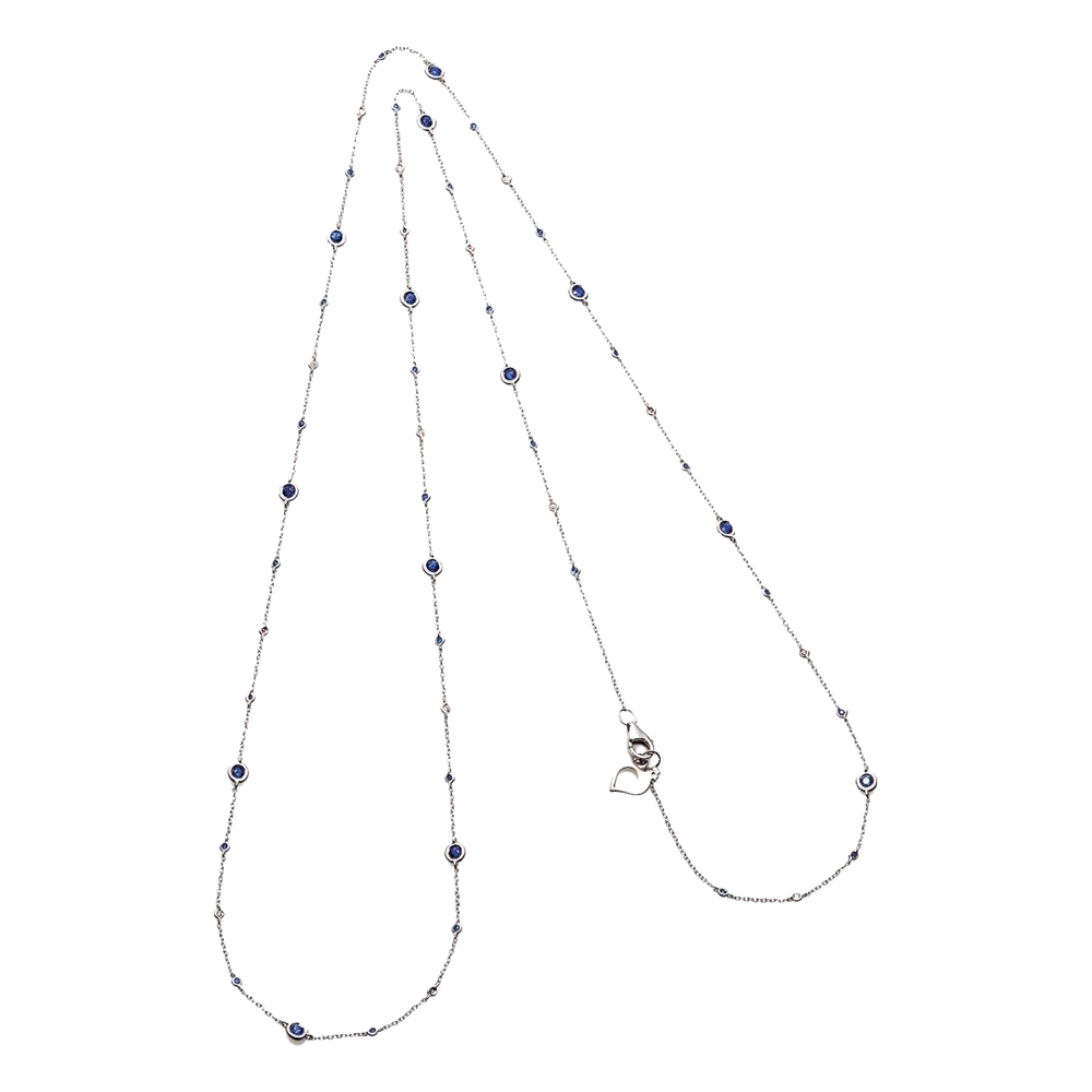 Catena lunga Capri 84 cm in oro bianco 18Kt, diamanti e zaffiri
