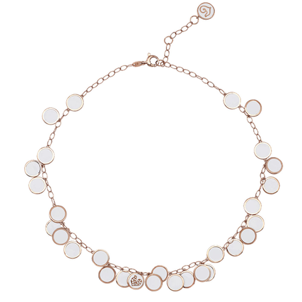 Collana girocollo Paillettes 38-42 cm in oro rosa 18Kt, diamanti e smalto bianco