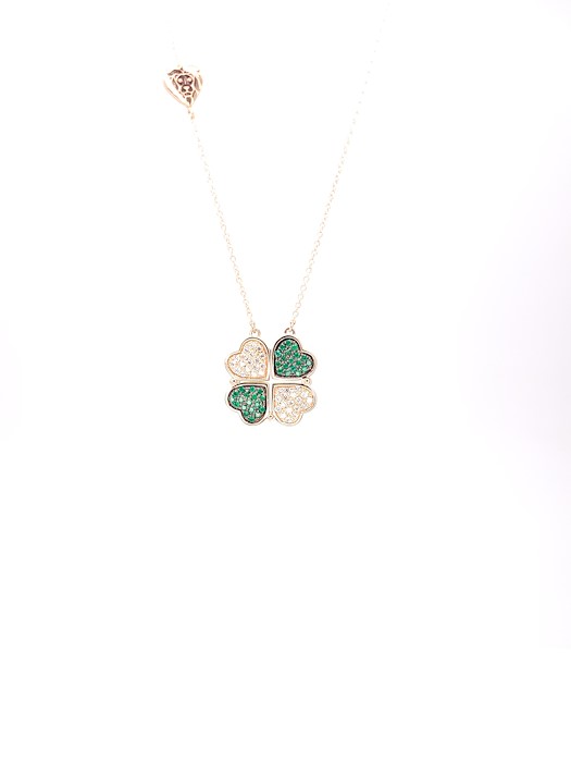 Il girocollo è regolabile su due lunghezze fino ad un massimo di 45 cm ed il ciondolo si apre trasformando il quadrifoglio in una centrale di quattro cuori