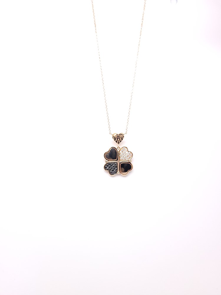 Il girocollo è regolabile su due lunghezze fino ad un massimo di 45 cm ed il ciondolo si apre trasformando il quadrifoglio in una catena di cuori