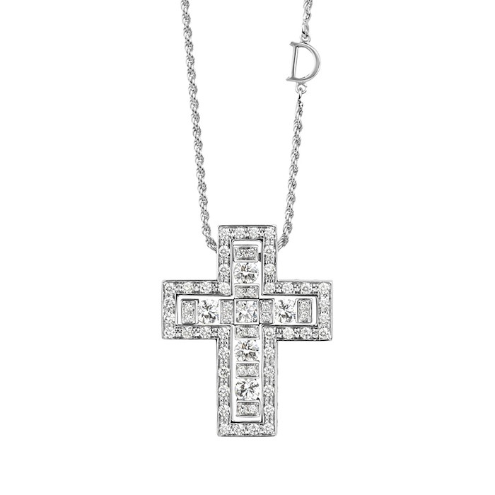 Collana Damiani collezione Belle Epoque con croce pendente in oro bianco e diamanti taglio brillante per una caratura totale di 1.26 Kt