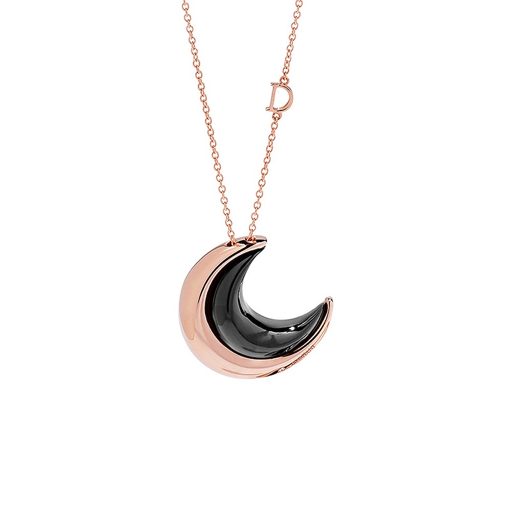 Girocollo Damiani collezione Spicchi Di Luna in oro rosa con smalto nero e diamante incastonato 0.01 Kt
