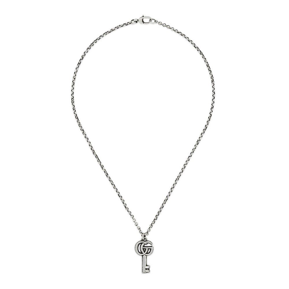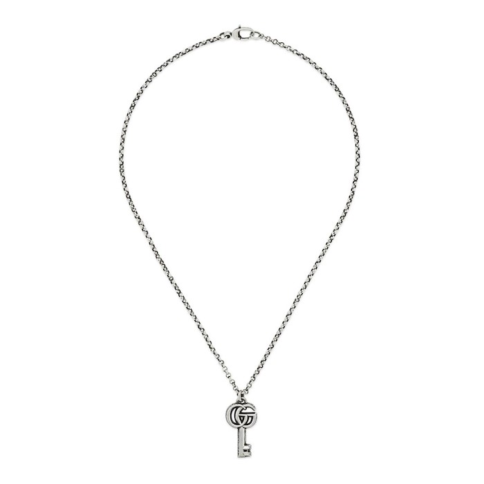 In questa collana anticata in argento 925, l'emblematica Doppia G si trasforma in un dettaglio a forma di chiave. Con design elaborati arricchiti da accenti che riflettono la tradizione della Maison, la collezione di gioielli Gucci in argento combina richiami classici e contemporanei.
