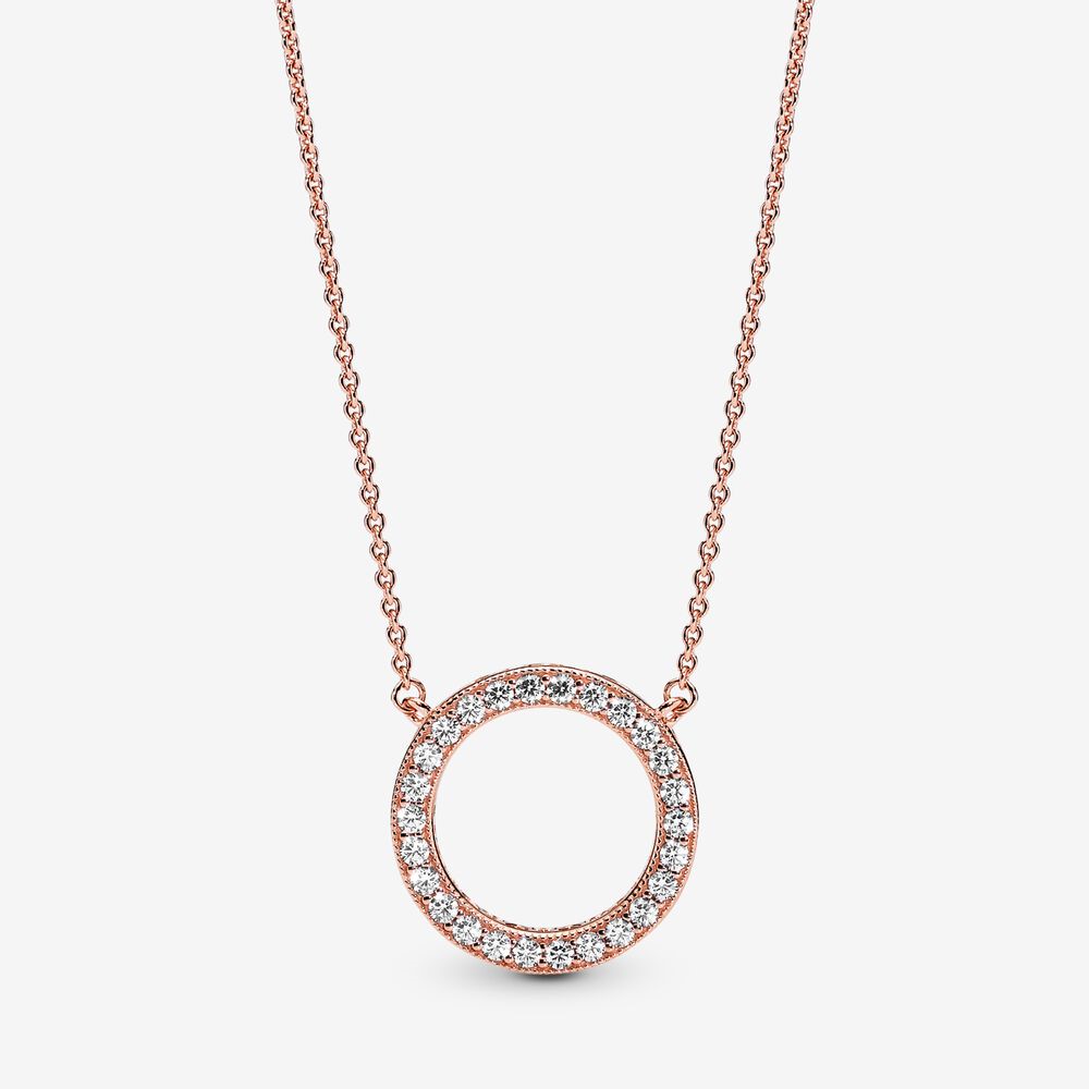 Questa scintillante collana in Pandora Rose, un’esclusiva lega di metalli con placcatura in Oro rosa 14K, è un classico intramontabile. Il pendente reversibile è incorniciato da pietre sfavillanti da un lato, mentre dall’altro presenta il logo Pandora goffrato, offrendo così due diversi modi di indossare la collana. La chiusura a moschettone e l’anellino sono in Argento Sterling 925. La delicata catenina si regola secondo tre diverse lunghezze, assicurando così la massima versatilità. Indossa la collana con gli orecchini cerchio scintillante abbinati, per un’eleganza impareggiabile.